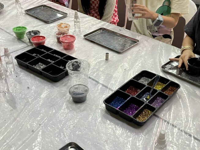 今回はカラフルスライムと磁石スライムから選び、スタッフが丁寧に指導。