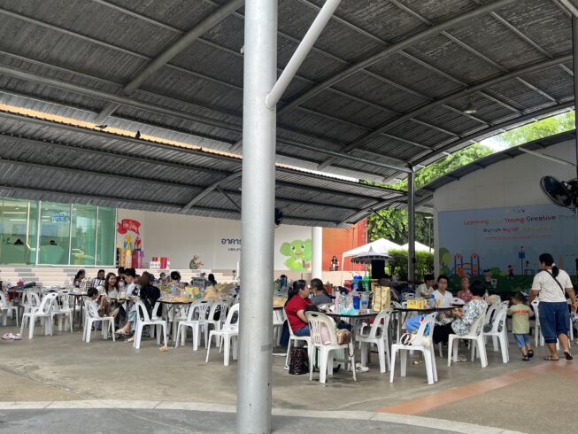 子ども博物館内にはレストランやカフェはありませんが、外の食事スペースが充実しています。