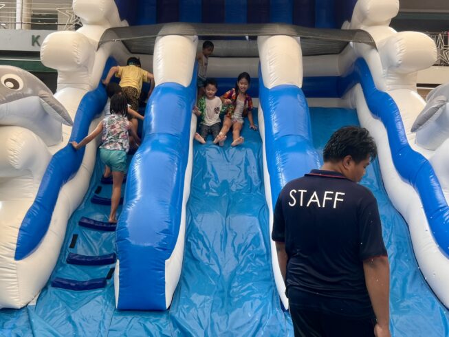 スライダーの後は行き行く人たちとの水かけを思いきり楽しみましょう♪