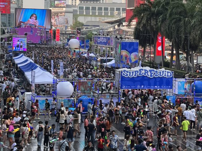 トゥクトゥクやシーローでの移動中も必ず水は掛けられられるので、一気に「都会のお祭り」感が。 「Kヴィレッジで遊ぶ → エムスフィアでも楽しむ」のコース、おすすめです。