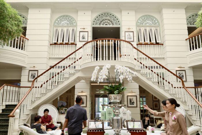 アフタヌーンティーは「オーサーズ・ラウンジ」で提供され、クラシックな白の内装と吹き抜けの天井が、まるでヨーロッパの邸宅のよう。