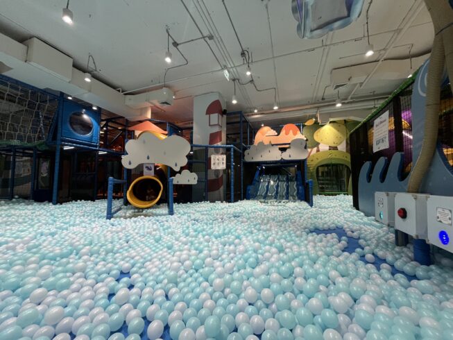 抗菌仕様の青いボールに囲まれた、まさに“海”のようなゾーン。
