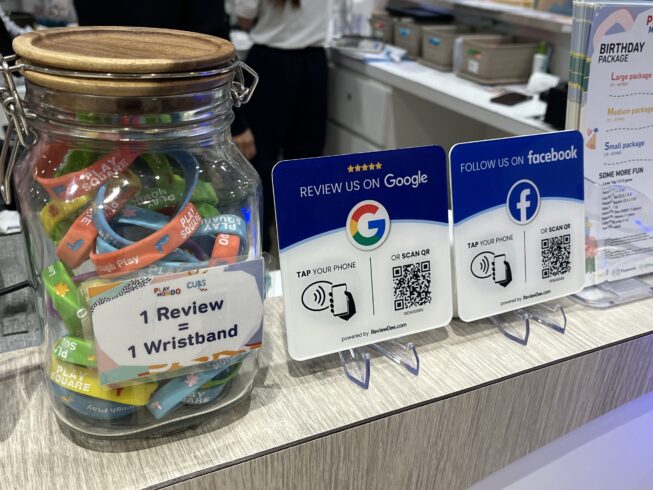 受付でGoogleマップのレビューを書くと、リストバンドなどのグッズがもらえるキャンペーンをやっていることがあります。