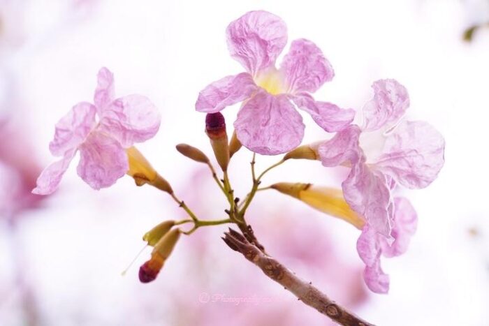 2月になると、バンコクの公園(チャトゥチャック公園や鉄道公園など)で、「チョンプー・パンティップ(和名:モモイロノウゼン)」という花が満開になります。