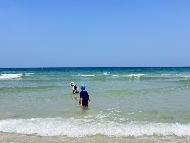 特に午後2時頃の熱気はすごく、外を歩くと汗が噴き出します。ただ雨はほとんど降らないので、プールや観光の予定は立てやすいですよ。